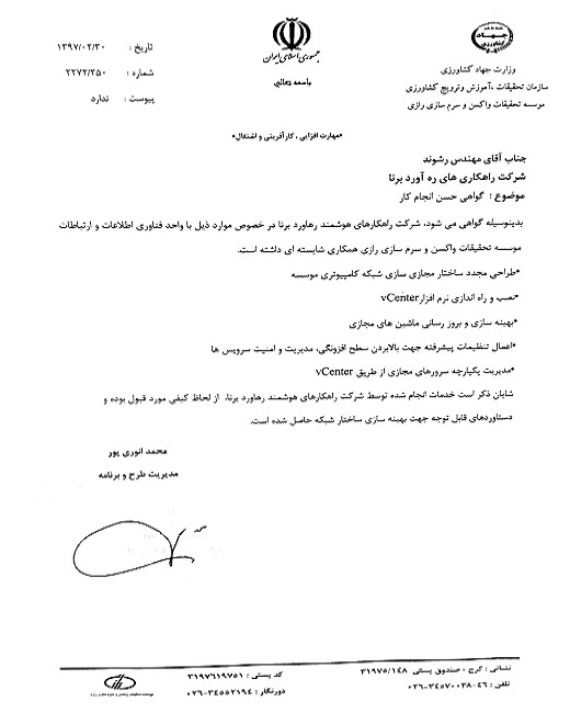 همزمان با رشد و توسعه سازمان ها، وابستگی به بسترهای امن و مطمئن IT بیشتر می شود. با توجه به محدودیت های نیروی انسانی مقیم در واحدهای IT سازمان ها، این شرکت طرح هایی در خصوص ارایه خدمات مشاوره در حوزه فناوری اطلاعات و ارتباطات با محوریت ایجاد زیر ساخت های مطمئن و قابل اعتماد جهت ارایه سرویس های پایدار IT و همچنین محافظت از اطلاعات مهم سازمان ارایه می نماید. این خدمات مشاوره با شناخت دقیق نیازهای فعلی و آتی سازمان، ظرفیت سنجی، برنامه ریزی صحیح برای بخش IT و انتقال دانش در خصوص آخرین تکنولوژی ها و تجهیزات می تواند به عنوان زیربنایی برای هدایت صحیح مسیر تیم های فناوری اطلاعات و ارتباطات در سازمان ها باشد که در نهایت منجربه استفاده بهینه از منابع سازمان، ارتقای امنیت، قابلیت اطمینان بیشتر در بسترهای اطلاعاتی، جلوگیری از دوباره کاری ها و پیشرفت کسب و کار سازمان می گردد.